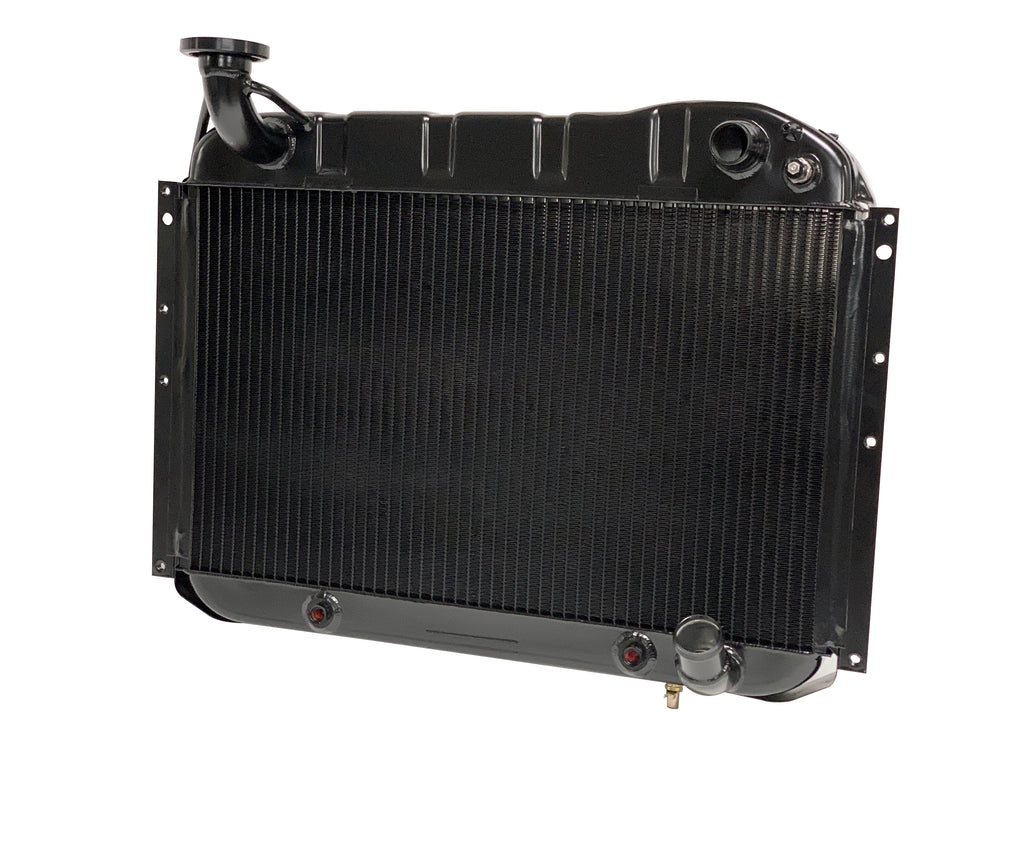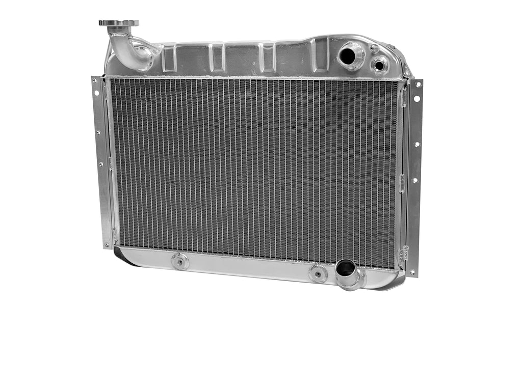 Our press formed tanks provide an OE appearance and mean you won’t have any fitment issues, no matter if your C1 Corvette was originally a Blue Flame six or small block car. Flat plate welded end tanks that our competitors use rarely have this luxury, requiring modifications to your car to fit the larger tanks and/or additional bracketry or adapters. Using a two-row core built with 1-inch-wide core tubes and serpentine cooling fins (which is equivalent to a four-core copper/brass radiator) maximizes air flow contact through the core to pull away the most heat, no matter the demand on the system.